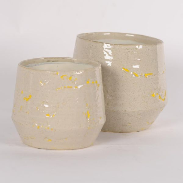 Lichtgrijze keramieken bloempot van Rasteli met groeven.