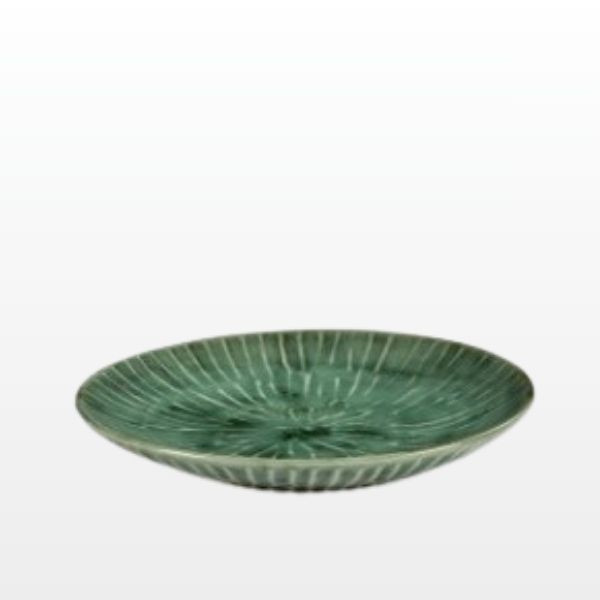 Pascale Naessens maakte eigenhandig de serviescollectie Verde Lanza die nu exclusief door Serax wordt geproduceerd. De naam refereert aan het eiland Lanzarote, een plaats waar Naessens vaak verblijft. Daar liet zij zich inspireren door het groen van de houten ramen, deuren en schaarse planten die afsteken tegen de zwarte maanlandschappen. Het zonverweerde groen - een kleur die bijzonder goed samengaat met al het lekkers van de wereld - wordt versterkt door de schelpvormige textuur van de borden die Naessens met haar vingers heeft aangebracht. Bij deze collectie is er gekozen voor een reactieve glazuur. Deze reactieve glazuur zorgt voor een uniek karakter en kan voor kleurschakeringen zorgen tussen verschillende stuks.