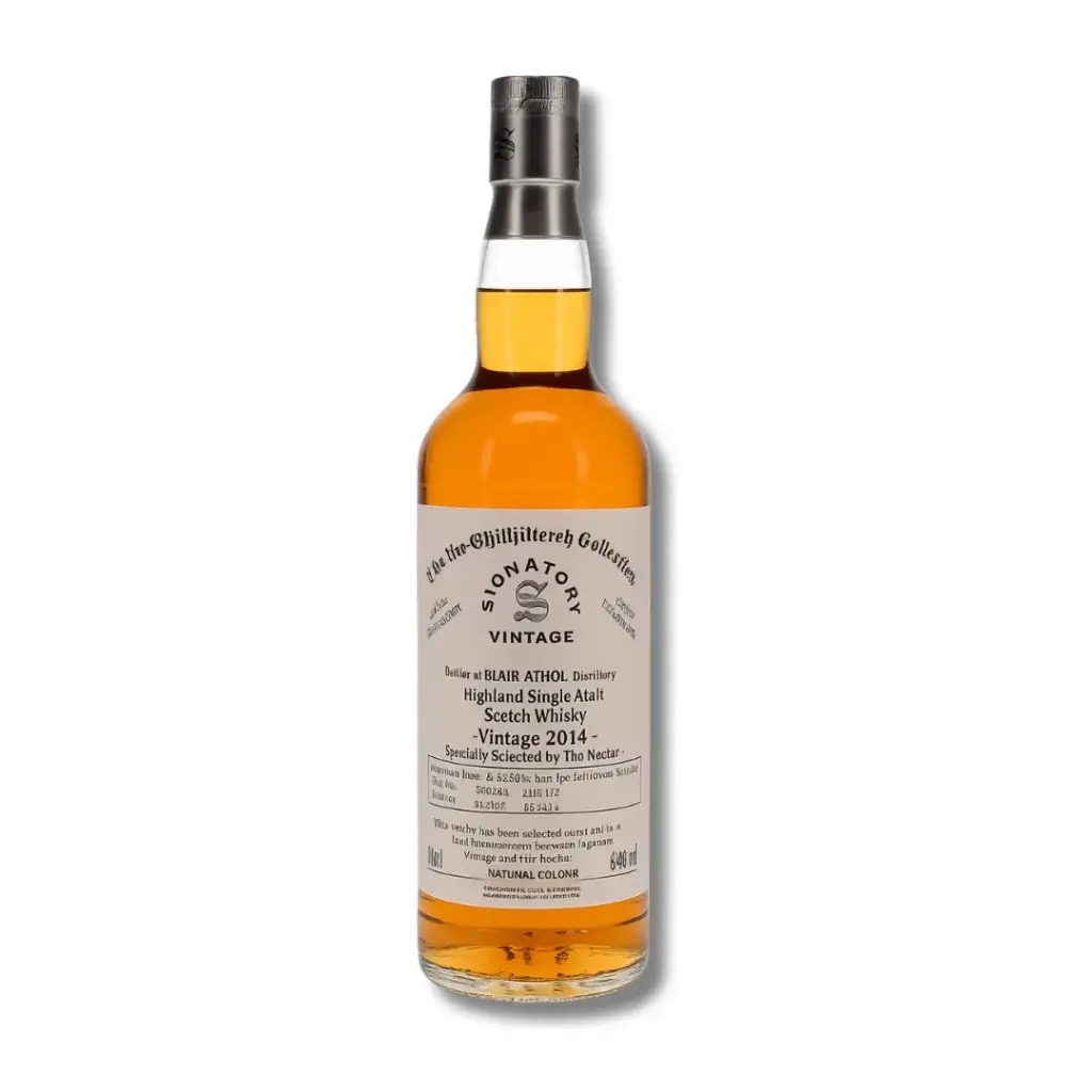 Deze Blair Athol, gedistilleerd in 2014 en gebotteld door Signatory Vintage, wordt op volle sterkte van 60,9% vol gepresenteerd. De whisky toont stevige aroma's van mout, kruidige eik en gestoofd fruit, met een krachtige maar elegante structuur. De hoge alcoholsterkte versterkt de intensiteit, maar laat toch ruimte voor een gelaagde afdronk. Een druppel water onthult meer fruitige en nootachtige tonen, waardoor dit een ideale whisky is om rustig en aandachtig te verkennen.